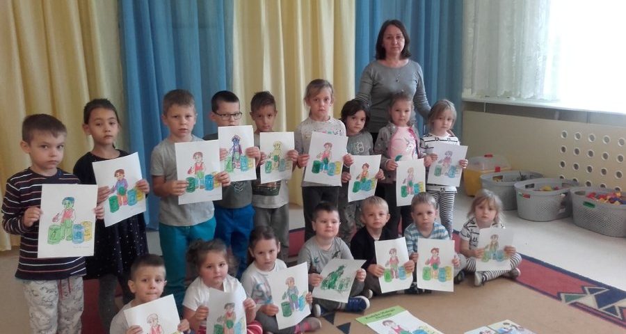 Dnia 20 września 2019 roku w grupie „BIEDRONEK” rozmawialiśmy o ogólnopolskiej akcji „Sprzątania Świata”, która w tym roku odbywała się pod hasłem „Nie śmiecimy – sprzątamy – zmieniamy”. Przedszkolaki dowiedziały się dlaczego należy dbać o środowisko, segregować śmieci i zawsze je sprzątać. Dowiedziały się również, w jaki sposób można wykorzystać odpady i wykorzystać je do zabaw plastycznych. Dzieci utrwaliły sobie kolory pojemników do segregacji odpadów podczas rozmowy,  zabawy ruchowej i spaceru po osiedlu. Zajęcia te zainspirowały przedszkolaków do działań mających na celu dbanie o nasze środowisko.