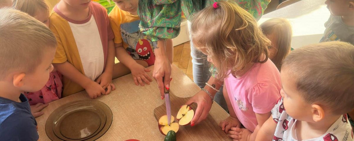 Co kryją owoce i warzywa w środku? Zabawa badawcza w Pszczółkach połączona z konsumpcją-rozwijanie wszystkich zmysłów w tym samym czasie. A kiedy poznaliśmy tajemnice zawartości owoców i warzyw, posialiśmy nasionka i czekamy na plony.