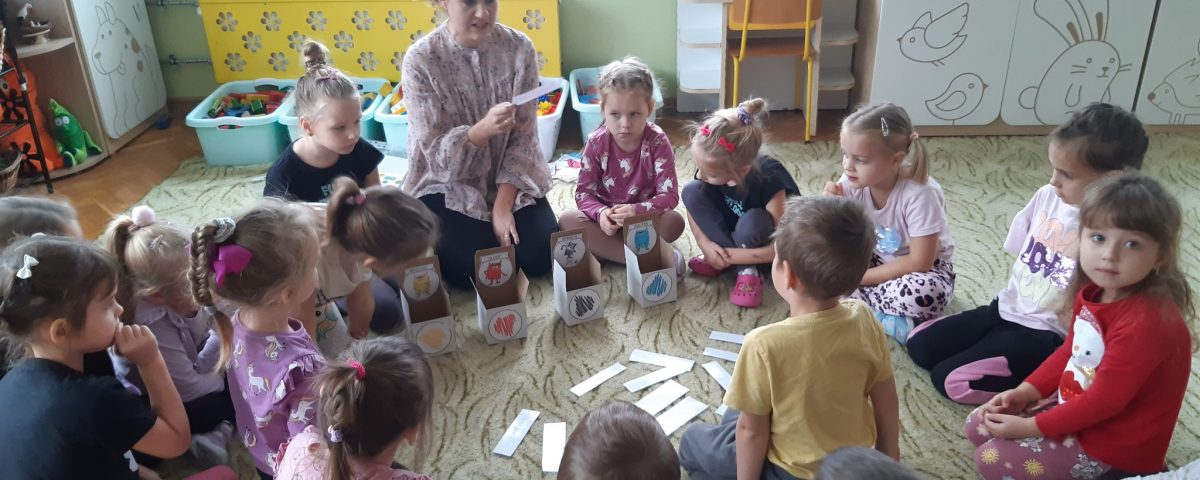 Pięciolatki podczas zabaw prowadzonych przez Panią Kasię – psychologa przedszkolnego, przygotowanych w oparciu o książkę pt. Kolorowy Potwór” uczyły się nazywać podstawowe emocje oraz rozpoznawać sytuacje, w jakich dane uczucia się pojawiają.
