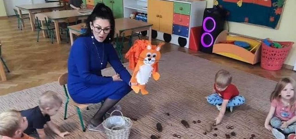 Wiewióreczka mała , po lesie biegała, czyli maluchy poznawały zwyczaje i wygląd wiewiórki. Dowiedziały się również po co niektóre zwierzęta robią zapasy na zimę i same pomagały Wiewiórce Basi zebrać kasztany i szyszki, aby miała co jeść, kiedy spadnie śnieg.