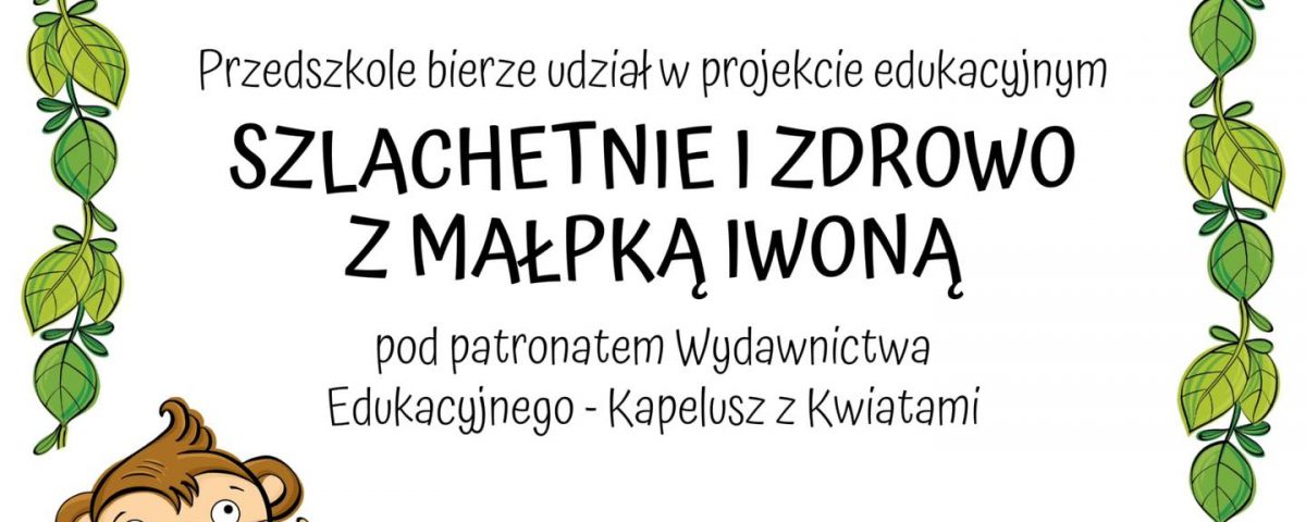 Nasza placówka z dumą bierze udział w projekcie „Szlachetnie i zdrowo z małpką Iwoną”! Jest to inicjatywa, która łączy w sobie edukację o zdrowym stylu życia z wartościami szlachetnego postępowania.
