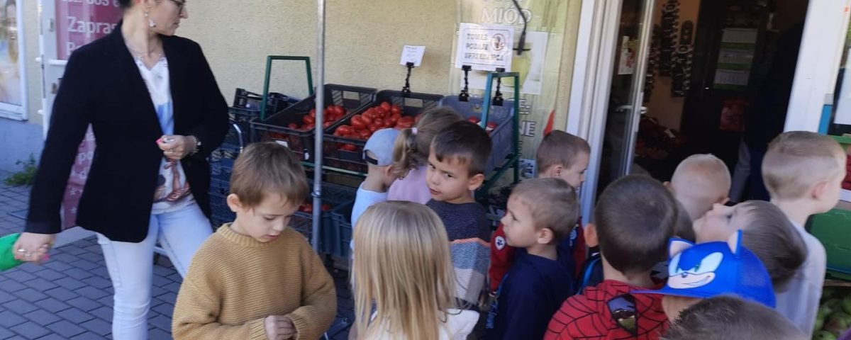16.09.2025r. dzieci z grupy „Rybki” wybrały się na wycieczkę na pobliski stragan owocowo – warzywny.