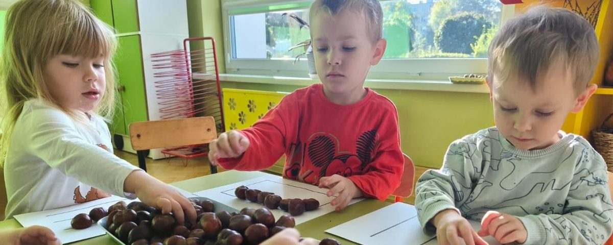 Jesień to czas kreatywnych zabaw z darami natury. Wykorzystując kasztany, dzieci rozwijały swoją wyobraźnię, uczyły się współpracy i cierpliwości. Powstawały różne wzory, figury geometryczne. To świetny sposób na połączenie matematyki z twórczą zabawą w jesiennym klimacie.