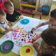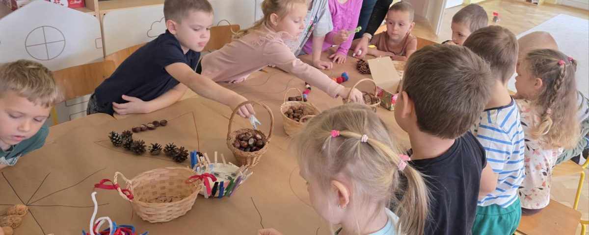 Jesień w rytmie dziecięcej kreatywności – zabawy twórczo-sensoryczne naszych Rybek z wykorzystaniem materiałów przyrodniczych, uczą pomysłowości, wspólnego, zgodnego działania, a przy tym rozwijają motorykę małą.