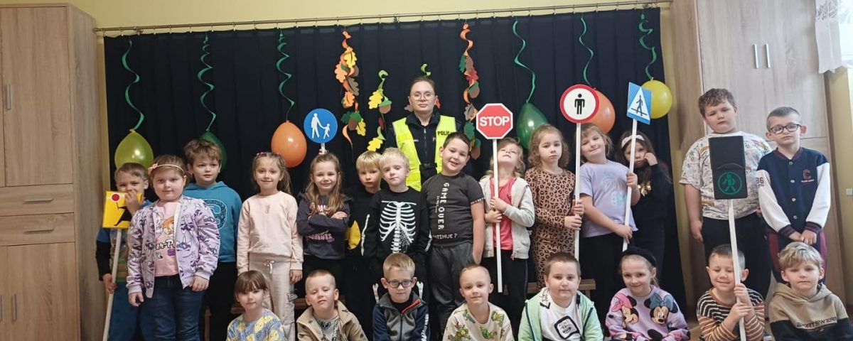 Podczas spotkania dzieci dowiedziały się, jak bezpiecznie poruszać się po drodze – zarówno jako piesi, jak i pasażerowie samochodów. Przedszkolaki przypomniały sobie znaczenie najważniejszych znaków drogowych, poznały zasady przechodzenia przez jezdnię oraz dowiedziały się, dlaczego tak ważne jest noszenie elementów odblaskowych.