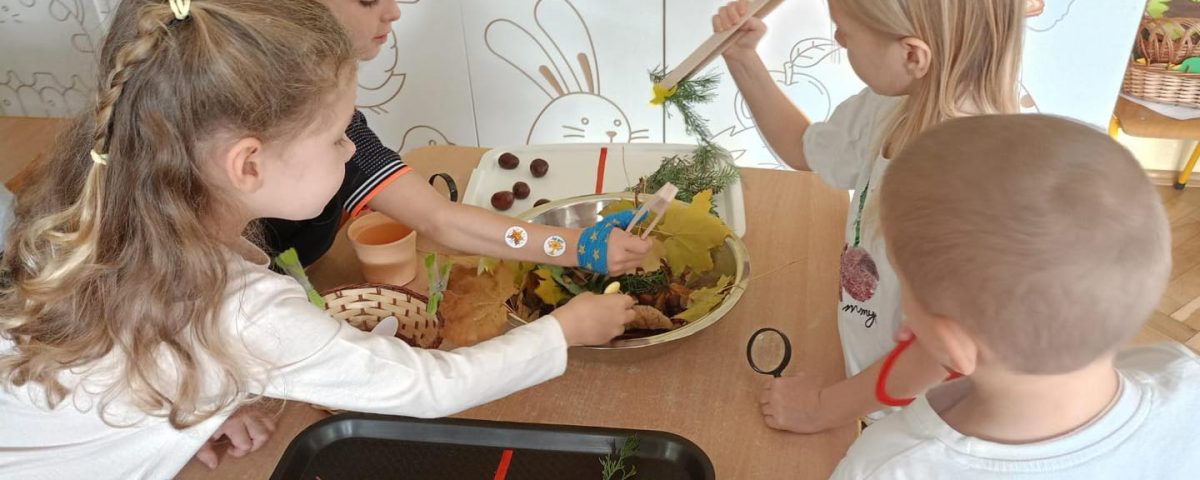 „Co wiemy o jesieni?” – zajęcia podsumowujące wiedzę i umiejętności z zakresu treści przyrodniczych z wykorzystaniem materiału naturalnego w grupie Rybek.