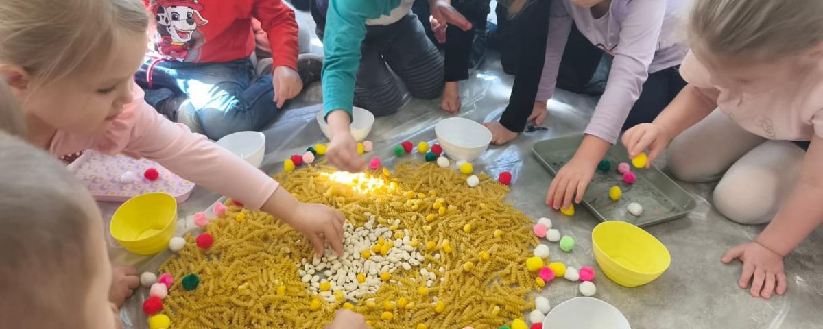 Dziś dzieci poznały historię Kopciuszka – układały historyjkę obrazkową, a następnie same mogły wcielić się w rolę bohaterki, oddzielając mniejsze ziarenka od większych.