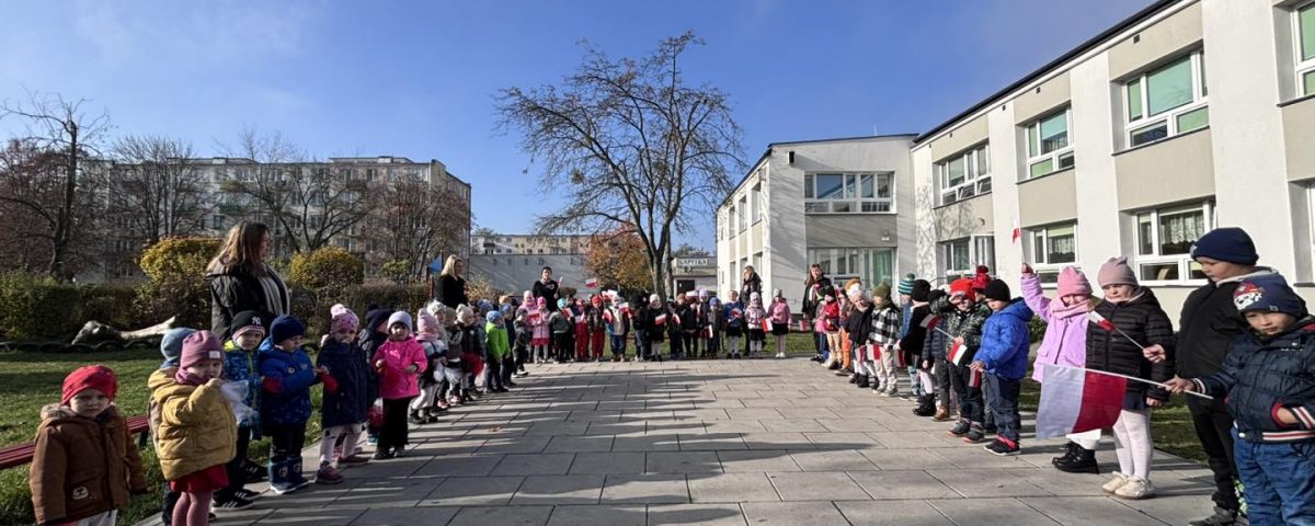 W piątek 07.11.2025r. świętowaliśmy Dzień Niepodległości. Przedszkolaki ze wszystkich grup zaprezentowały się w wierszu „Co to jest Polska?” oraz piosenkach „Kocham moją Polskę” i „Polak Mały”. Znają polskie symbole narodowe: flagę, godło i hymn. Wzięły udział w akcji „Szkoła do hymnu”‚, podczas której uroczyście i w postawie stojącej odśpiewały Mazurek Dąbrowskiego. A na koniec odbył się uroczysty przemarsz wszystkich Ekoludków w okolicy naszego przedszkola z chorągiewkami w dłoniach.