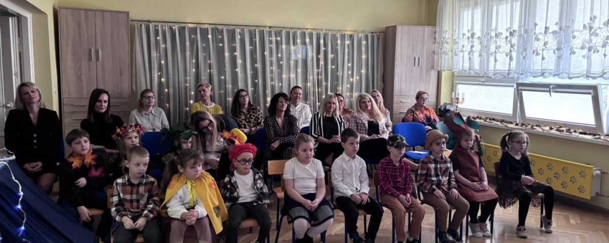 Na scenie pojawiła się wyjątkowa para gości – Pani Jesień oraz mądra Sowa, które wprowadziły dzieci w jesienny, magiczny nastrój.