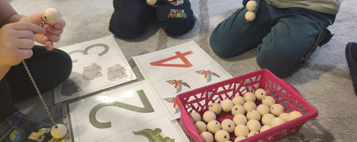 9 stycznia 2026r. dzieci z grupy Misie poprzez zabawę rozpoznawały cyferki – nawlekały odpowiednią ilość korali, dokładały właściwą liczbę klocków oraz układały pompony. Zajęcia rozwijały sprawność manualną i umiejętności matematyczne.
