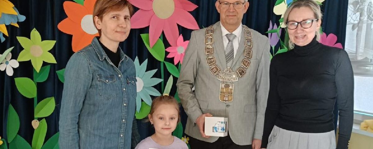 Gabrysia K. z grupy Rybki otrzymała z rąk organizatorów Cech Rzemiosł Różnych we Włocławku dyplom i nagrodę za udział i zaangażowanie w konkursie plastycznym ,,Mój Sąsiad Rzemieślnik”.