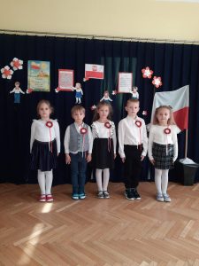 Przedszkolaki z grupy „Rybki” wzięły udział w konkursie „Do Hymnu z Ministerstwem Sprawiedliwości”. Celem  konkursu było  propagowanie patriotyzmu i szacunku do symboli narodowych wśród dzieci oraz  uczczenie obchodów 107 rocznicy odzyskania przez Polskę niepodległości.