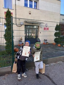Dwóch chłopców z grupy „Żabki” wzięło udział w konkursie plastycznym „Kapelusz Pani Jesieni”. Kazik zdobył pierwsze miejsce, a Jaś otrzymał wyróżnienie. Serdecznie gratulujemy naszym małym artystom! Dziękujemy również rodzicom za wsparcie i zachęcanie dzieci do rozwijania swoich talentów.